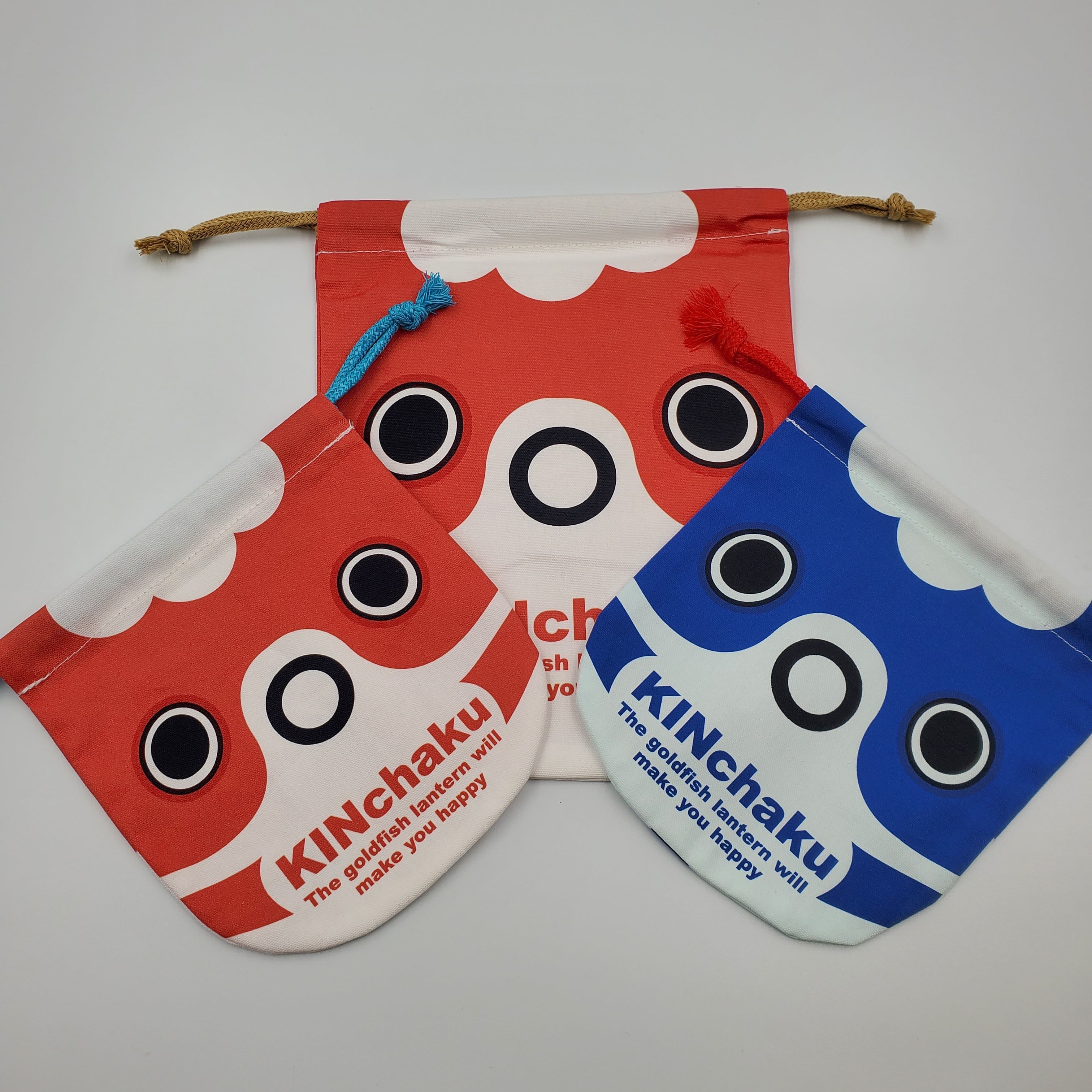 中央下に“KINchaku”と“The goldfish lantern will make you happy”の文字がはいっています。